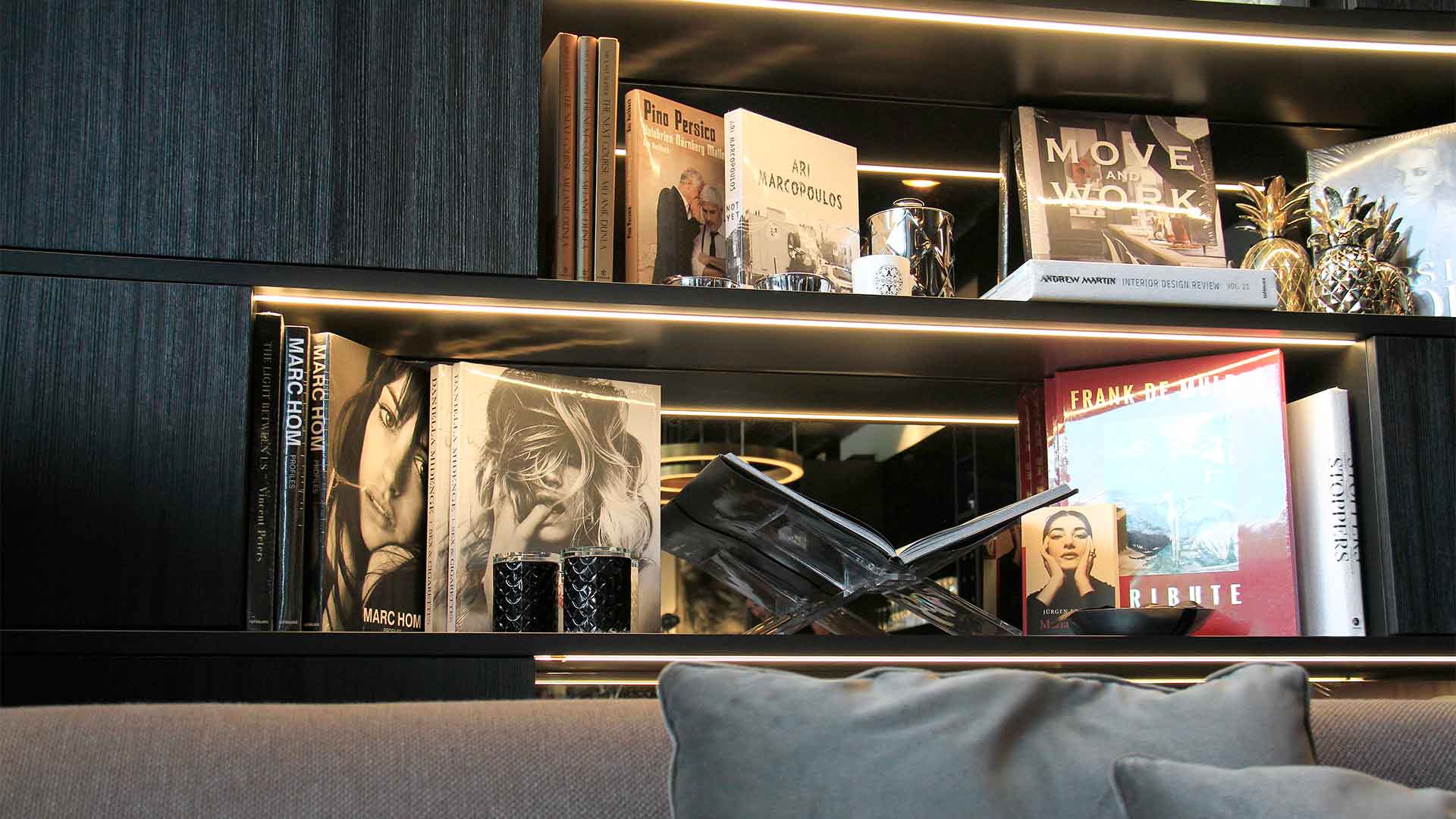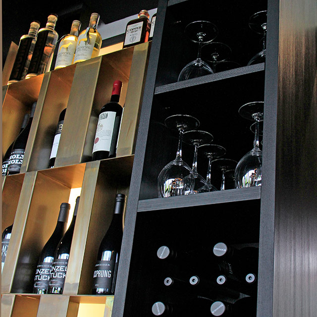 Pünktlich zur Eröffnung geliefert ergänzen die Möbel nach Mass (allesamt aus dunklem Naturholz) die luxuriöse, entspannte Gemütlichkeit des Interieur-Konzeptes perfekt. Von den Verkaufsräumen bis hin zur Kundentoilette entsteht so ein gepflegter, edler und zugleich moderner Eindruck.